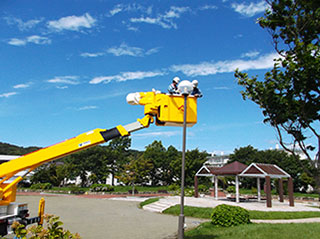 老人ホームやひとり暮らしのお年寄り宅の敷地、軒下などの除雪をお手伝いしています。また、屋内の電気配線の点検や照明器具の清掃などを行っています。