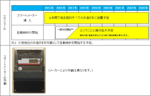 2023年度末までに、当社サービスエリア内のすべてのお客さまにスマートメーターを設置することとしており、今後、スマートメーターへの取替を進めてまいります。